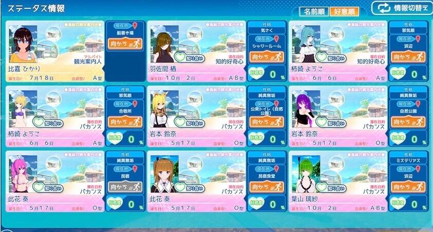 并且进行探索、互动等等。妹子数量众多,玩家可以选择自己喜欢的妹子进行养成