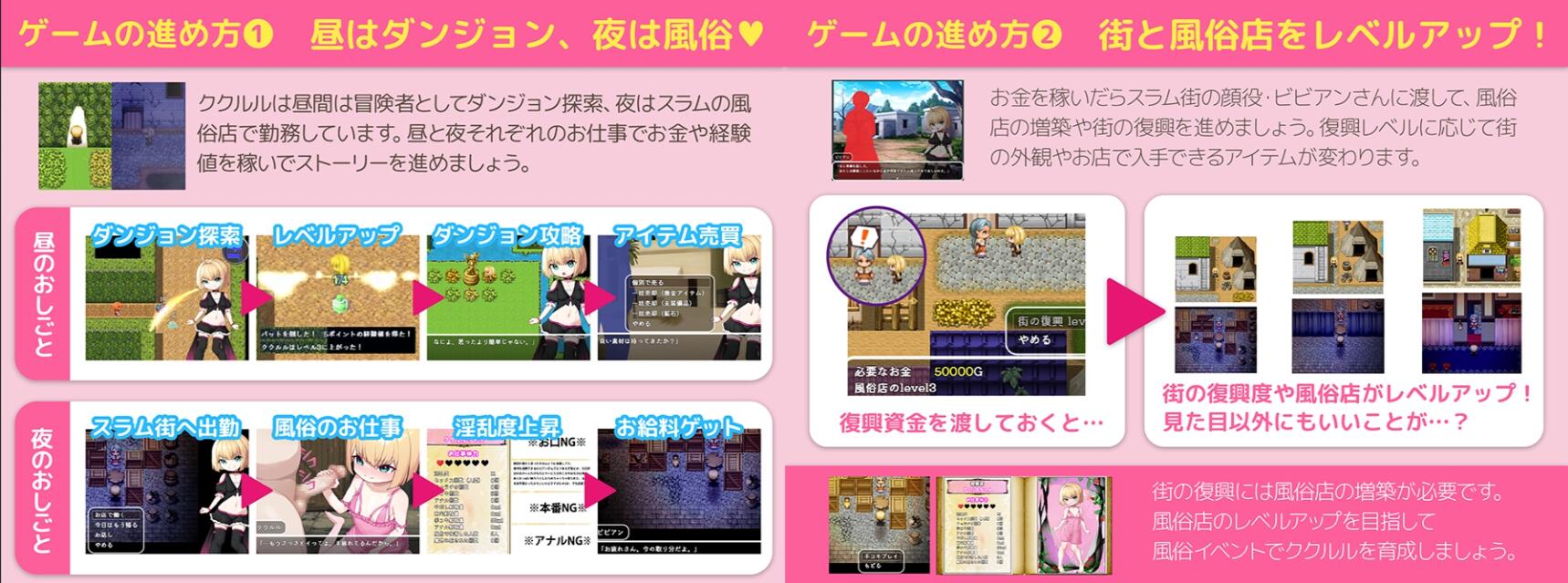 但通过扩建店铺和提升淫乱度,可玩的项目和金钱也会增加。赚取大量金钱,为贫民窟的复兴筹集资金吧。