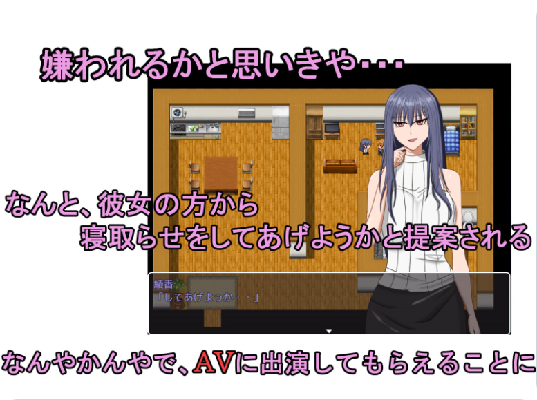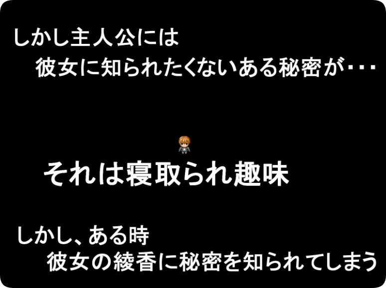 主人公是一名与女友绫香同居的大学生。某天,他偷偷隐藏的“被NTR(寝取られ)”性癖被女友绫香发现了。