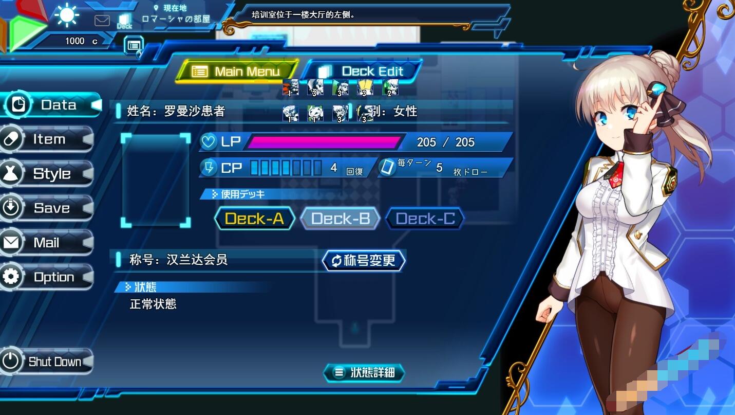 官方自带作弊房间,在任务传送室里的左右两边传送位平时可直接进入,开启全CG回想,各种エロ病毒异常状态,金钱和卡牌增加,昌馆卖鹑玩法,各种作弊指令告知,挑战模式等等,方便玩家随时社保!
