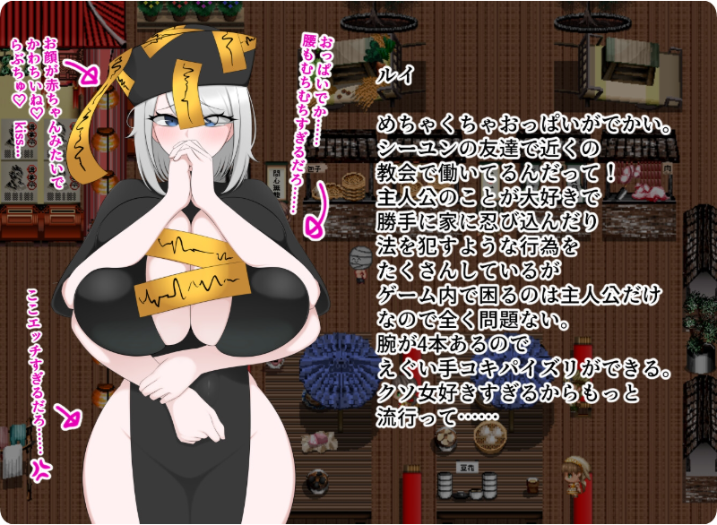 您可以在探索型RPG中与巨乳女主角们尽情享受亲密互动。