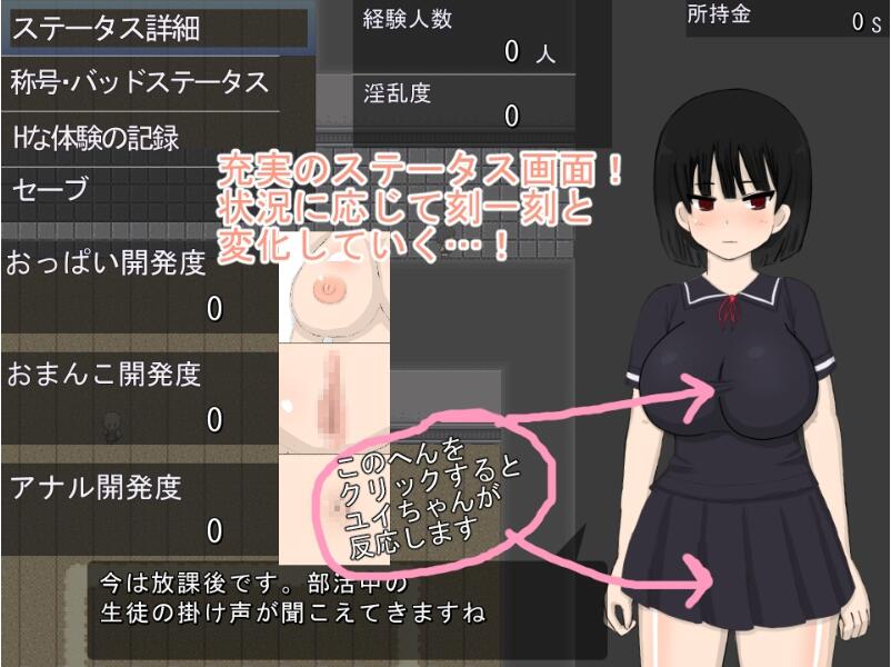 状态界面中还可对胸部、下半身进行触摸互动(性骚扰玩法)。