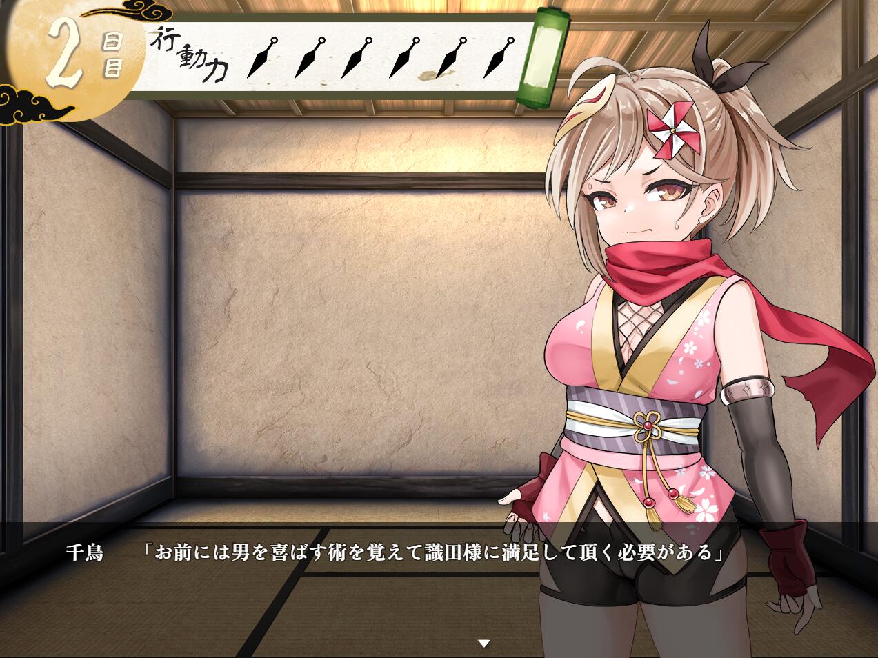 作为最接近天下的大名「识田」的护卫,亥贺的忍者「千鸟」成功捕获了前来暗杀识田的矿贺忍者「翡翠」。